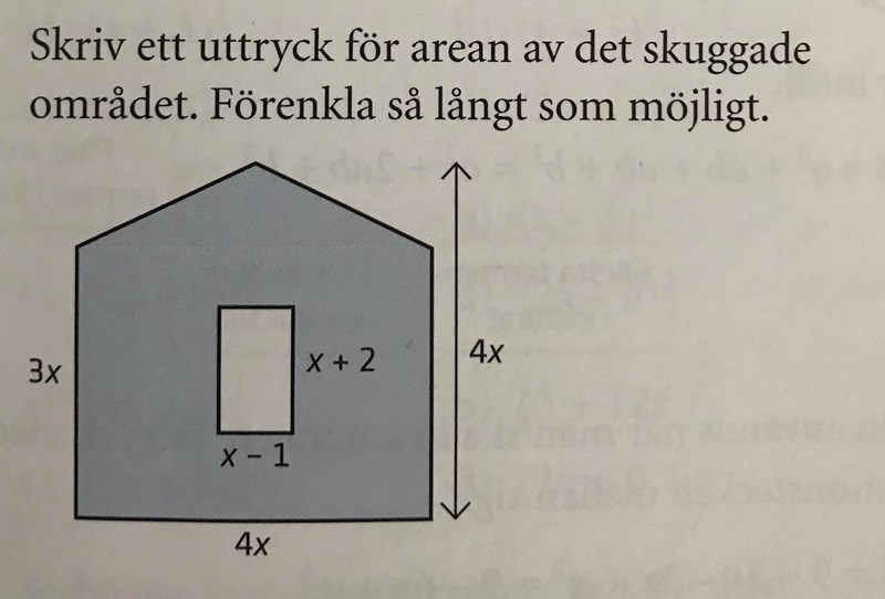 Skriv ett uttryck för arean av det skuggade området. Förenkla så långt som möjligt.