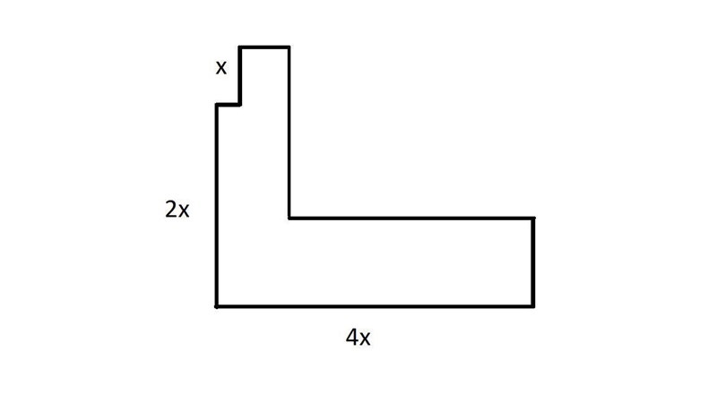 Den vågräta sträckan längs ned, med längden 4 x är lika lång som summan av de vågräta strecken på figurens ovansida. (Jag förutsätter att alla hörn är räta)