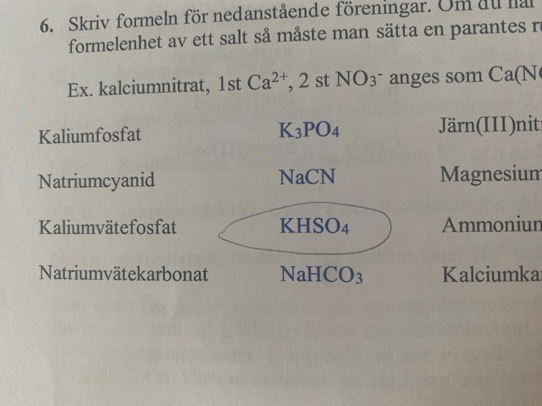 Varför blir kaliumvätefosfat det som jag ringat in och inte K2HPO4