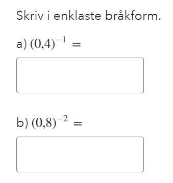 Knappast skrev:Laguna skrev:(0,4)-1 är det tal sådant att om man multiplicerar det med 0,4 så är resultatet 1.