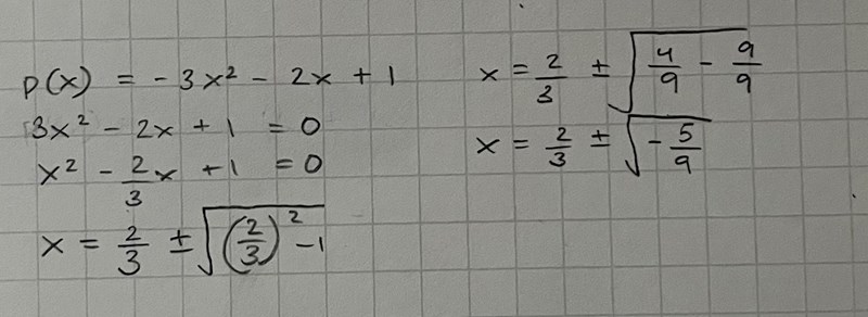 Nu har jag gjort det, men det blir ju fel då det inte går att ta roten ur ett negativt tal (se sista steget i uträkningen).