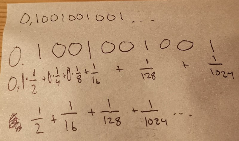 100.1001001001... och detta är ju egentligen bara 8x, för vi multiplicerade med 8x.
