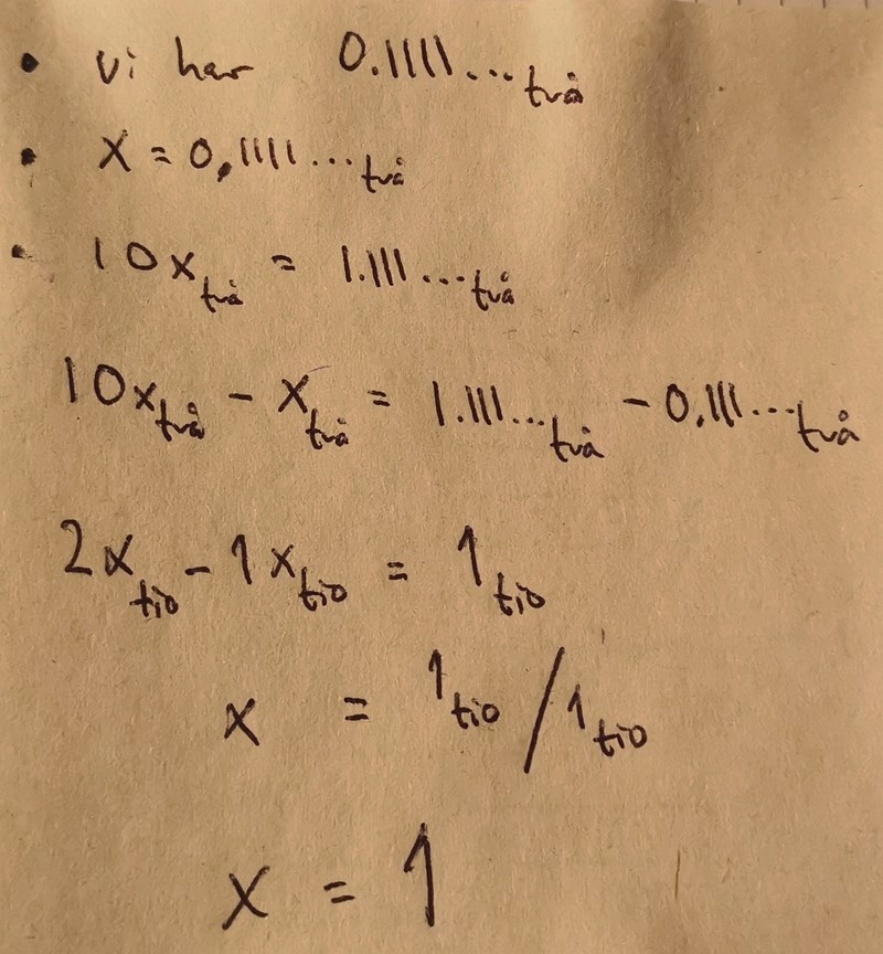 Du har 0.1001001001... i talbas 2, och vi kan kalla hela talet för x.