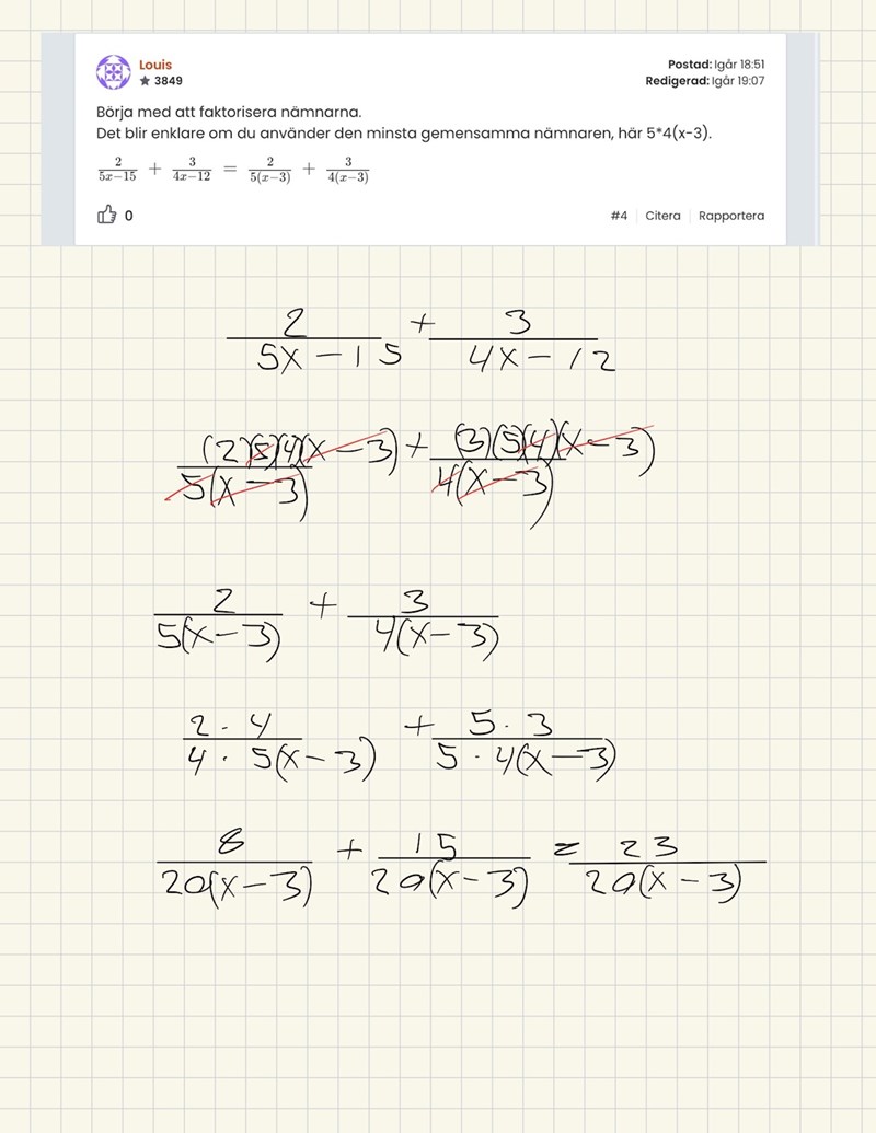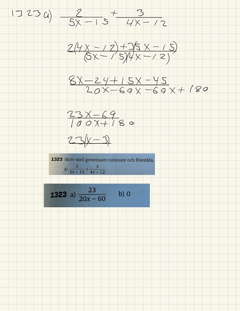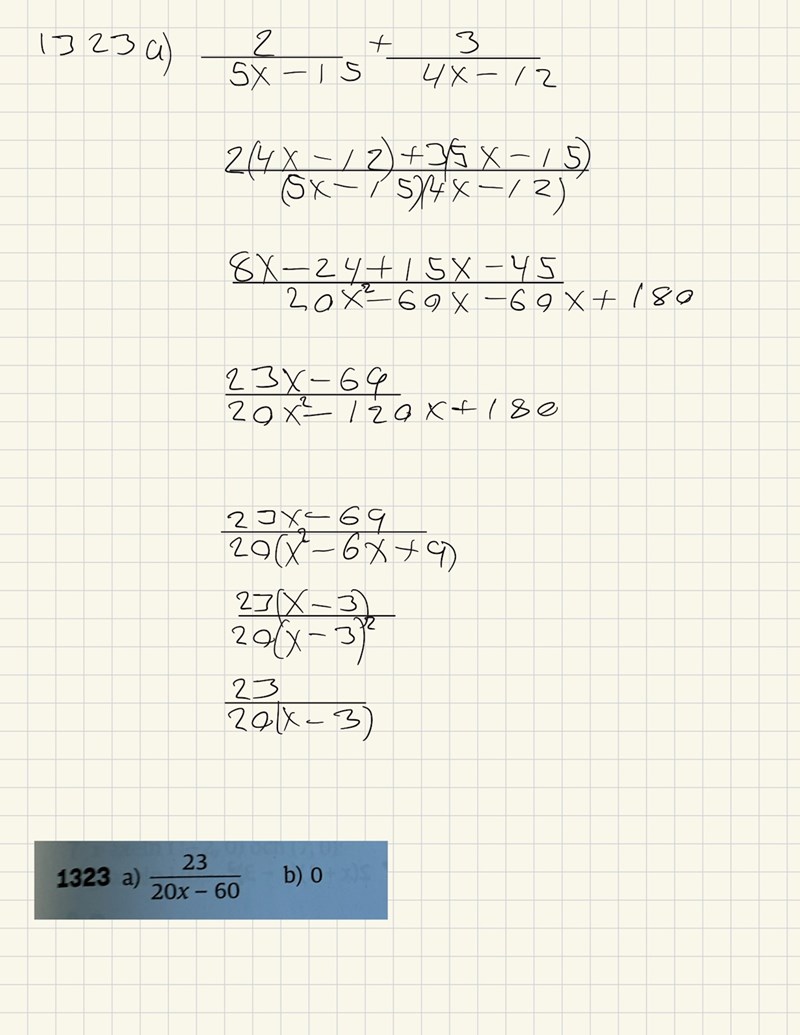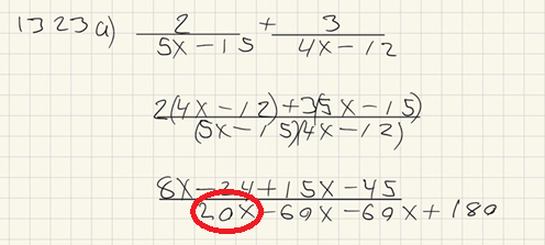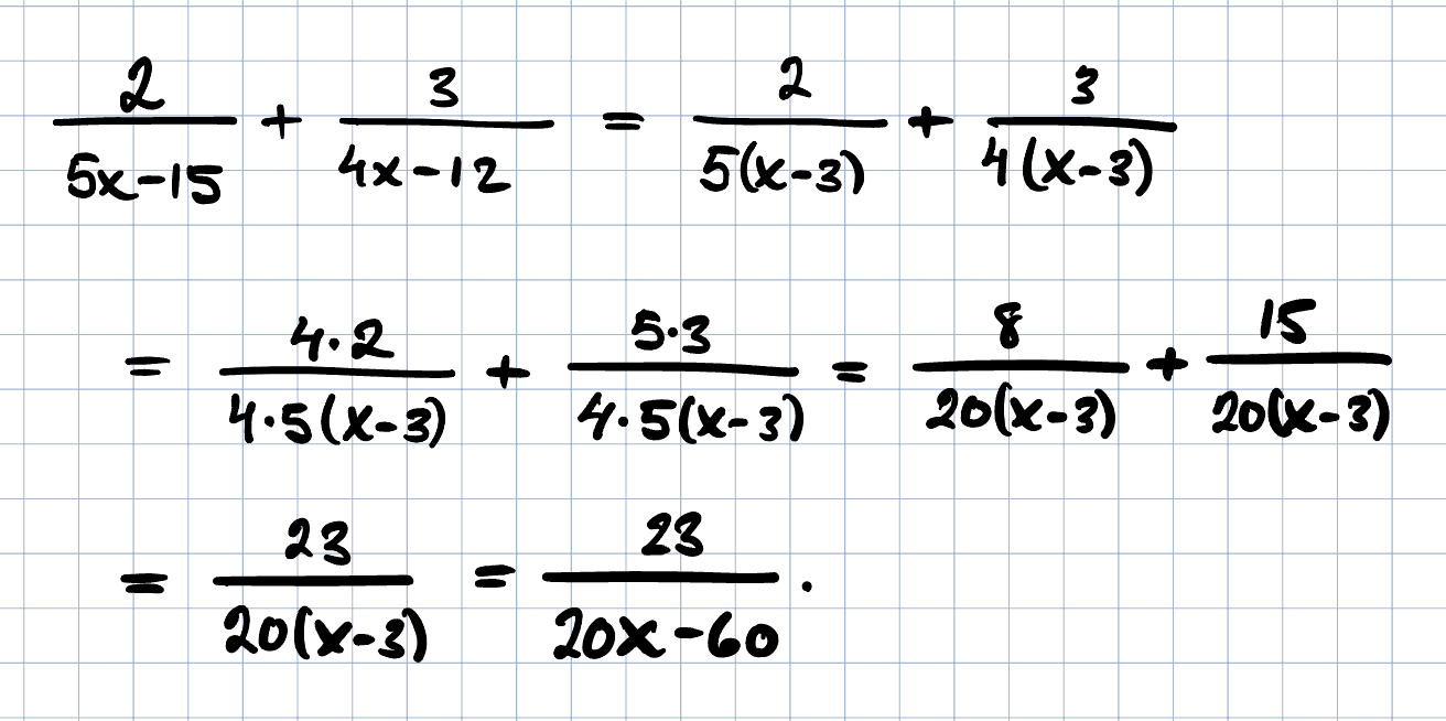 Det blir enklare om du använder den minsta gemensamma nämnaren, här 5*4(x-3).