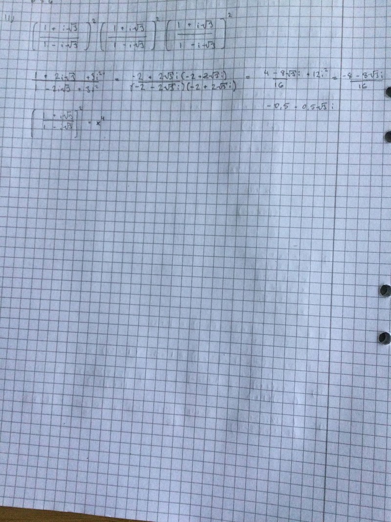 sen upphöjer vi dett tal med 9 och får då beloppet 19 = 9 samt argumentet 120*9 = 1080, vi drar bort tre hela varav (dvs 3*360) och får då argumentet 0.