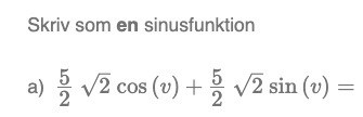 Jag skrev om det på formen sqrt(a^2+b^2)*sin(v+arctan(a/b)+n*pi)
