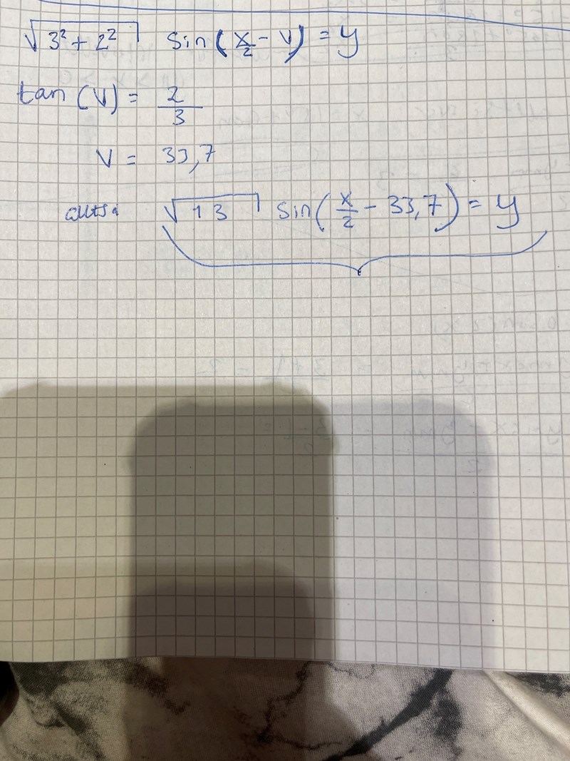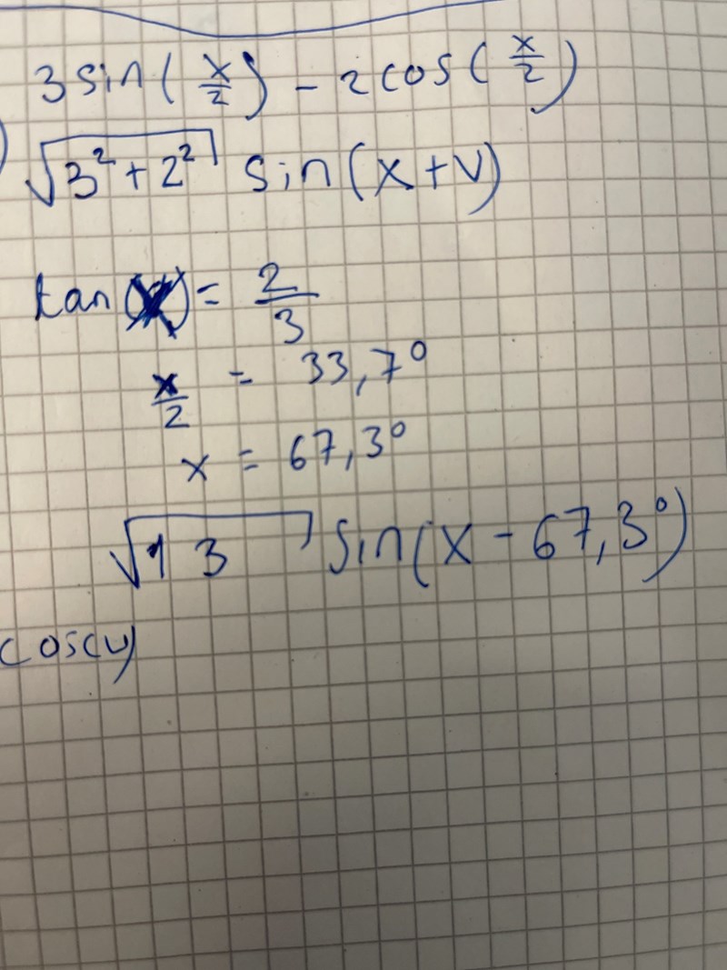 skriv som sinusfunktion" 3sin(x/2)-2cos(x/2)