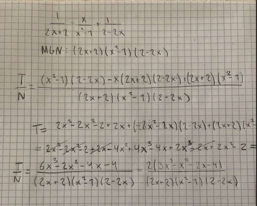 Försök istället att faktorisera de tre nämnarna och se om du hittar den verkliga MGN.
