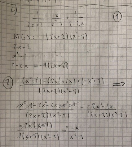 I facit står det -(1/(x-1)) men jag fick det till -(x/(x^2-1)), kan nån se vart det blivit fel?
