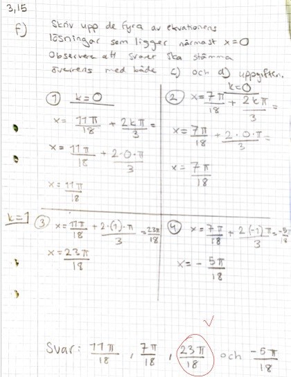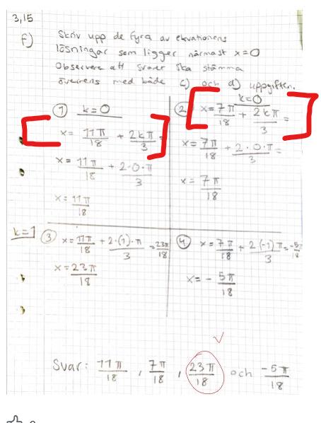 ja och på 3 av dem behöver k=0 bara på -5pi/18 behöver k=-1