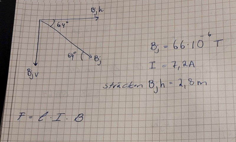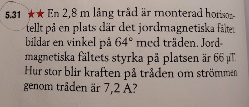Edit: Facit får B=Bj * sin 64= 66*10-6*sin 64