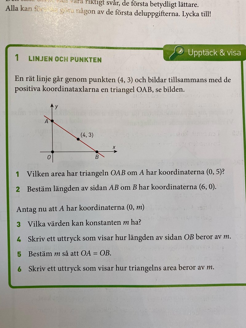Smaragdalena skrev:Rita upp några olika linjer som går genom punkterna (0,m) och ((4,3) för olika värden på m. Vad får du för värde på B i de olika fallen?