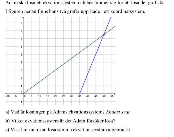 Uppgift b) .. jag förstår inte varför den ena grafen blir y= 1/2x - 35/2
