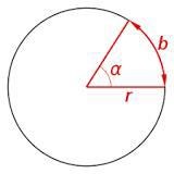 Vinkeln nedan är 1 radian därför att cikelbågen b är lika lång som r (radien)