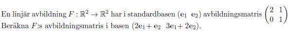 Uppgiften går ut på att du ska beräkna avbildningsmatrisen i den nya basen.