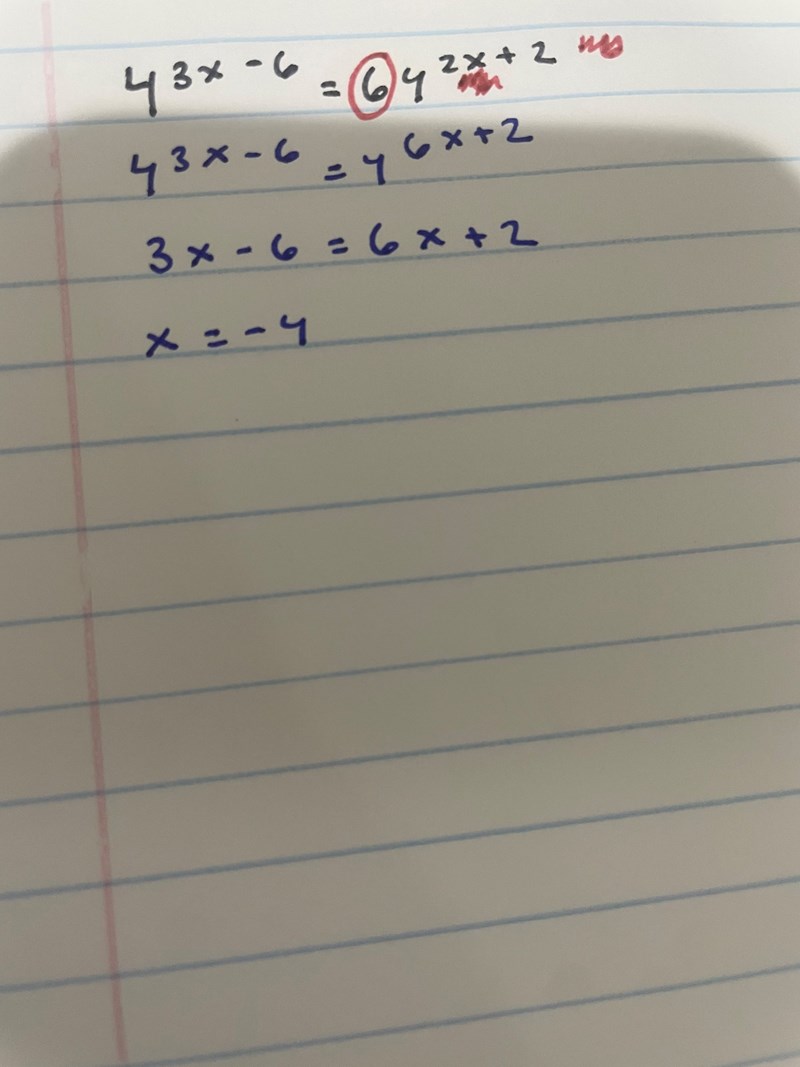 , det är helt fel, och man kommer då inte heller fram till att x = -4, så jag vet inte om du bara slarvade när du skrev av facit eller inte, men så kan man i alla fall inte göra. Gör som jag har gjort istället.