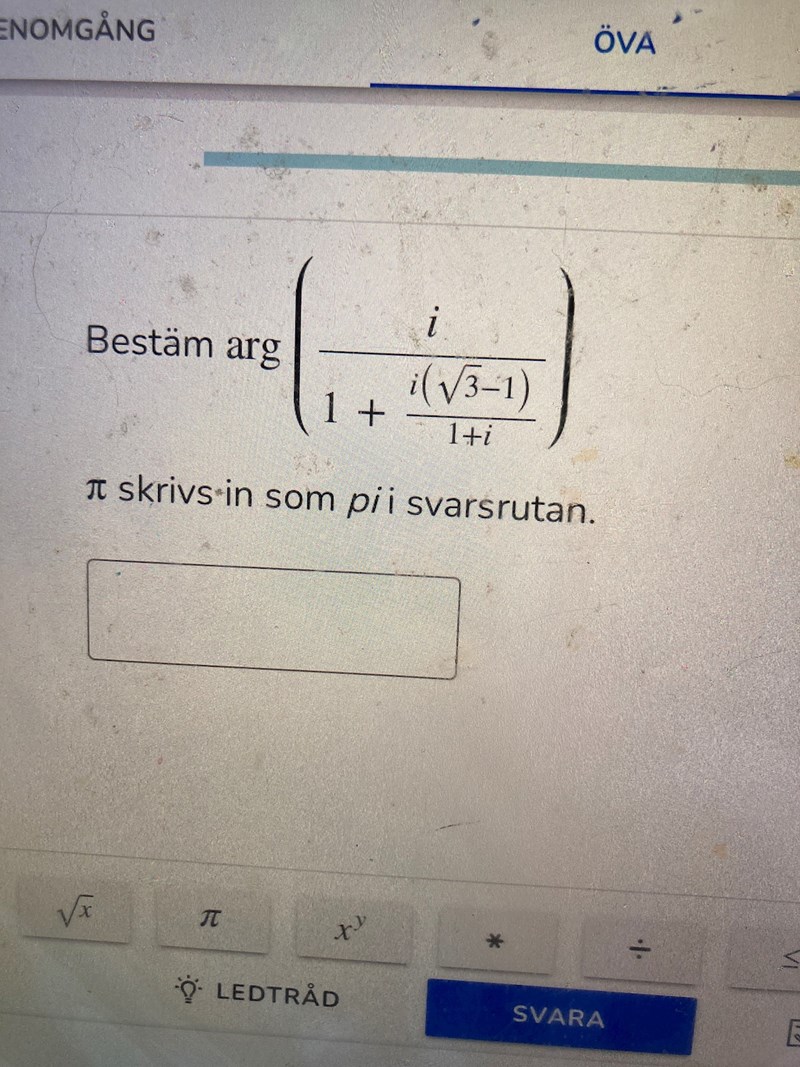 således argument för hela uttrycket blir pi/2+pi/4 -pi/3