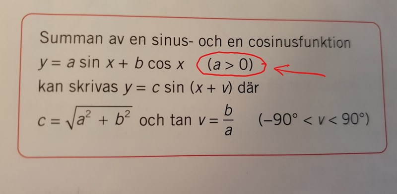 skriva om y = a sin x + b cos x, när a-värdet är negativt