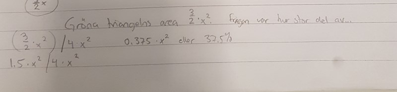 Tack för snabbt svar! I det här fallet var frågan att svara hur stor del av kvadraten som triangeln tog upp.