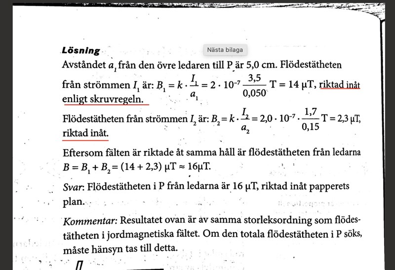 Så i räkneexempel använder dem skruvregeln eller hur? Hur visst man att magnetiskt fält är riktat inåt. Strömmen pekar ju åt olika håll.