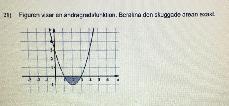 Jag kan skriva min lösning här. Men om 4/3 som jag nu fick är korrekt, har facit fel? Det står 2/3 ae och "Korrekt framtagen funktion x²-4x+3" vilket är samma funktion jag fick.