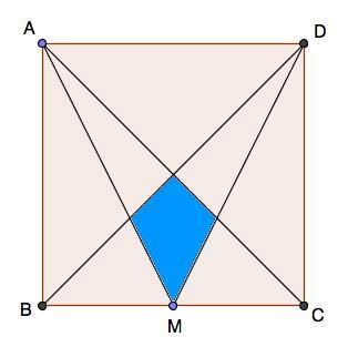 Kalla punkten där AC och BD skär varandra för O. Beräkna arean för triangeln BOC. Kalla punkterna där AM skär BD för E och punkten där AC skär DM för F. Beräkna arean för trianglarna BEM och CFD (lika). Kommer du vidare?