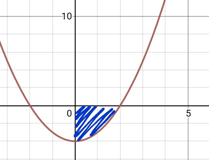 Här är den övre funktionens graf x-axeln, dvs den övre funktionen är g(x) = 0. Den undre funktionen är f(x).