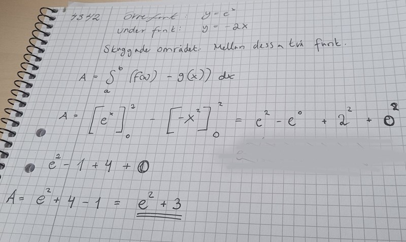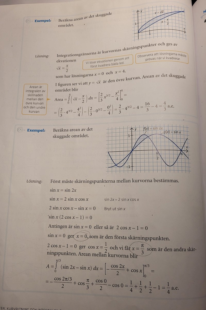 Du kan alltså beräkna arean av det skuggade området med en enda integral.