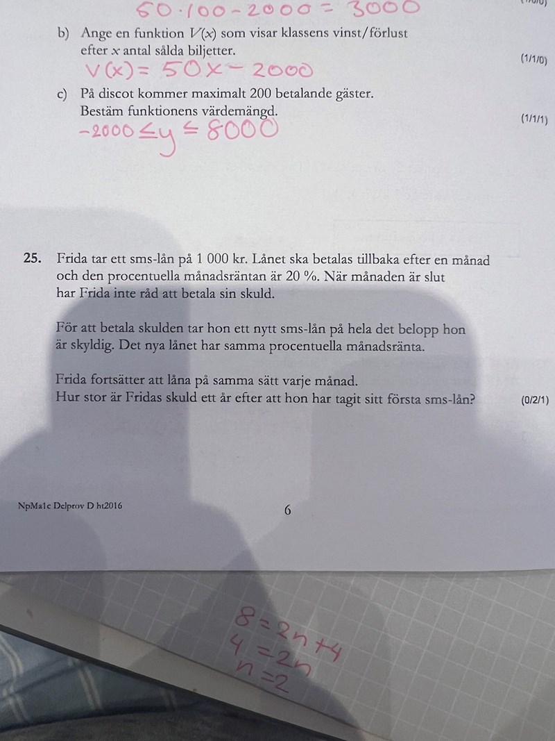 Hej! Tack så jättemycket för ditt svar! Jag undrar bara, det står ju att hon varje månad tar ett nytt sms-lån på hela det belopp hon är skyldig, hur kommer det in i ekvationen?