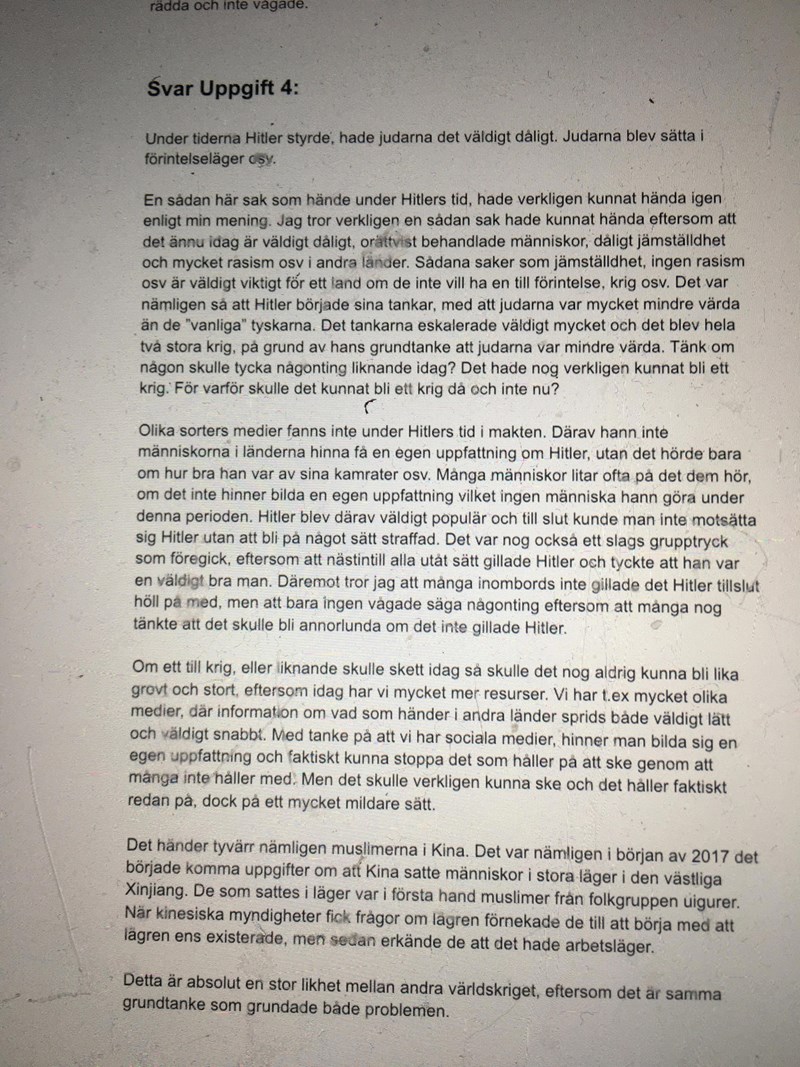 Jag sitter med en uppgift i historia (Åk 8) och jag har 0 idéer på vad jag kan skriva mer. Någon som har någon idé på vad jag kan tillägga för att få A?😊 (Lägger bild nedan på vad jag skrivit än så länge)