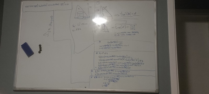 Laguna skrev:Det är nog delvis rätt. Om du ska maximera volymen så är det formeln för volymen du ska derivera, jag är inte säker på vad du deriverar nu.