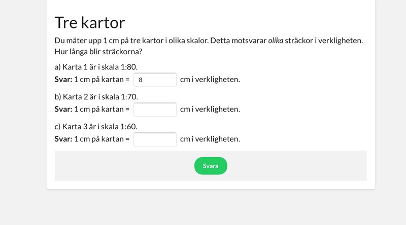 Smaragdalena skrev:Tack så mycket nu förstår jag alltså blir a) 800 cm i verkligheten