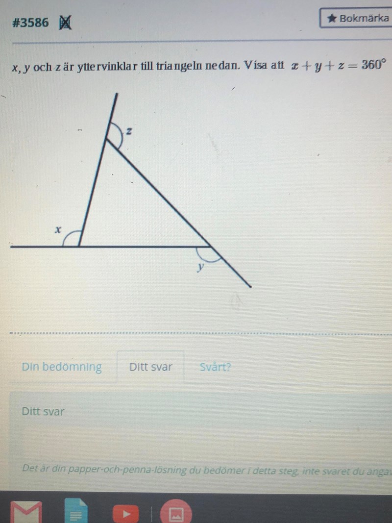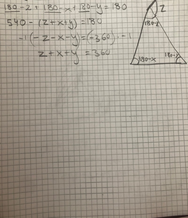 Ett rakt sträck har alltid vinkeln 180 grader. Om ena vinkeln är Z då är den andra 180-z..