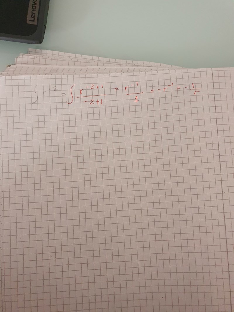 Den primitiva funktionen till r-2 ska du kunna hitta.