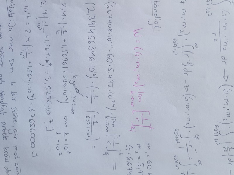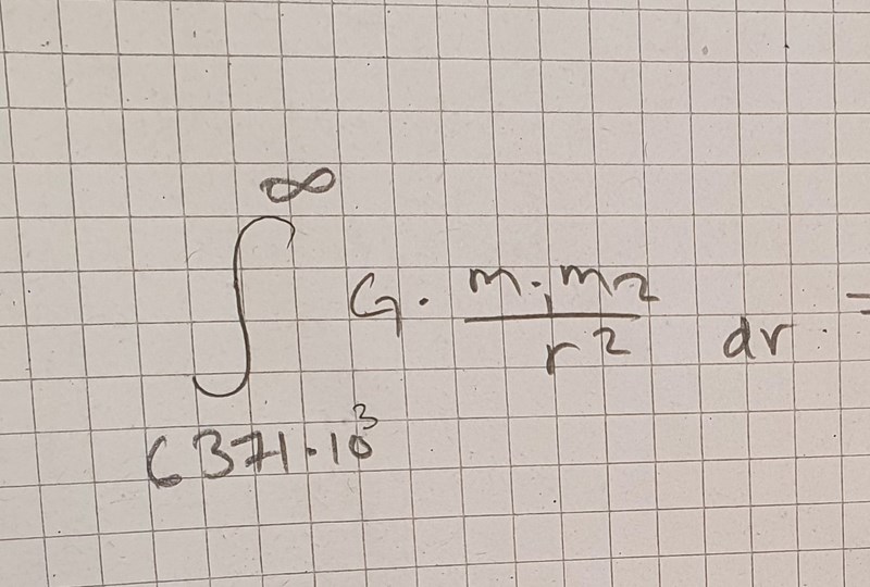 Alltså ett ändligt värde. Detta ser ut att vara en slags simpel beräkning av det fysikaliska arbete som krävs för att lämna jorden. Om detta skulle vara oändligt skulle det vara omöjligt att lämna jordens gravitationsfält men det låter kanske inte rimligt trots modellens simplicitet?