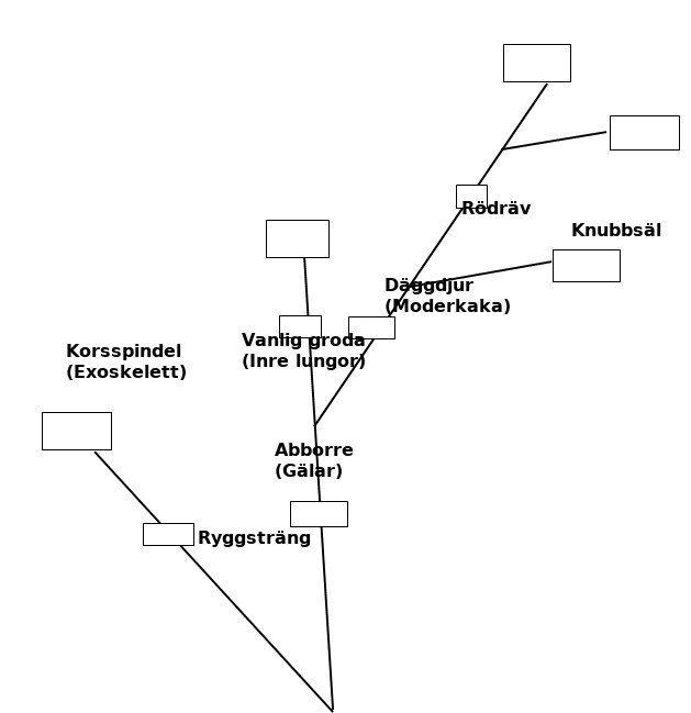 Skriv också in följande egenskaper på rätt plats i släktträdet utifrån när de har dykt upp: