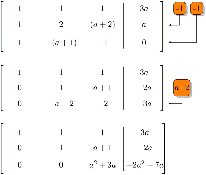 Determinanten för systemet är . Alltså är determinanten 0 om a=0 eller a=-3.