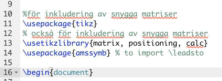 Testa att kopiera följande till ett tomt dokument i din favvo-LaTeX-setup