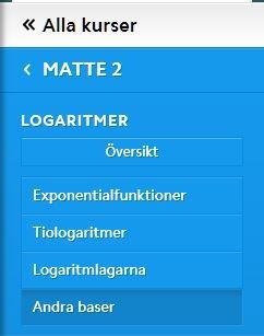 Alltså är logaritmen för 5 i basen 2 = 2,322. Detta skrivs också log25=2,322
