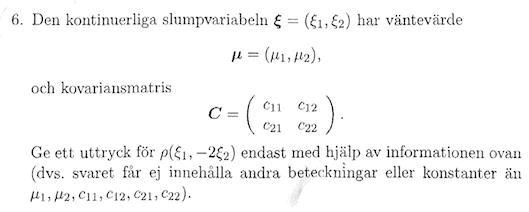 Du vill beräkna korrekationskoefficienten mellan slumpvariablerna och ,