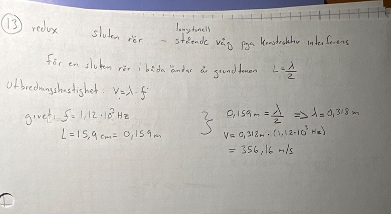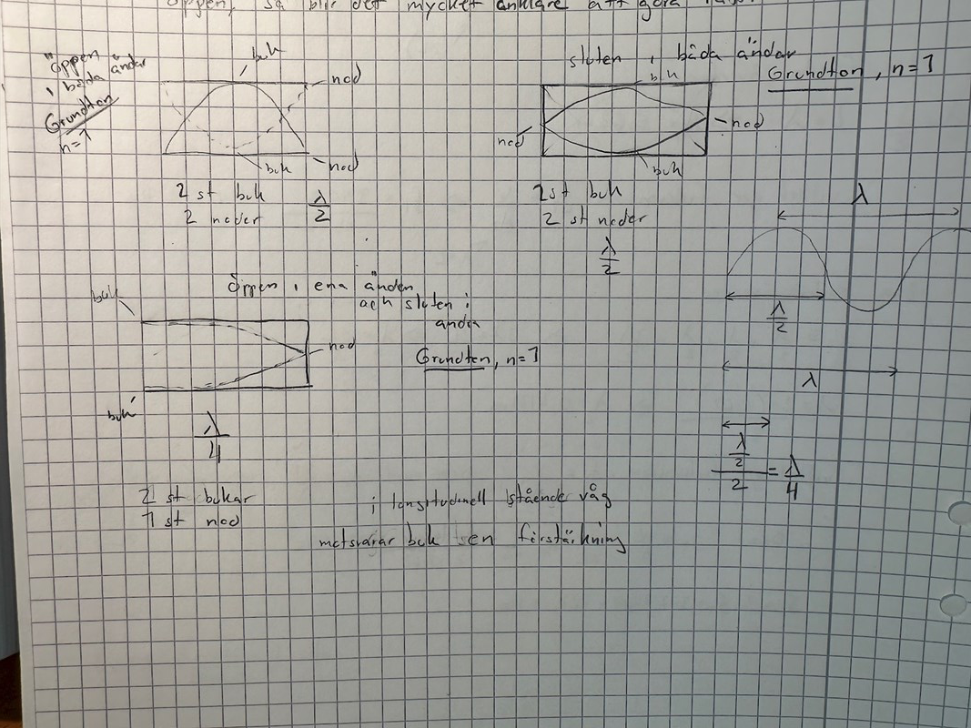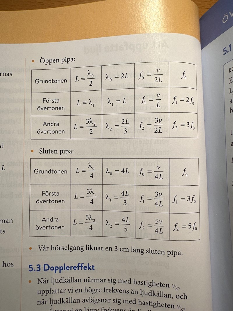 Tips: Rita alltid ut din stående våg i pipan innan du räknar och lägg noder där den är sluten och en buk där den är öppen, så blir det mycket enklare att göra rätt. Dessutom kan du skippa tabellen. För mig funkar det mycket bättre än att slå i tabell.