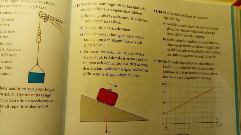 Här råder ingen censur, varken jag eller någon annan moderator har tagit bort eller dolt något som har skrivits i tråden. Problemet är att alla vi andra fyra som har svarat i tråden verkar tänka på samma sätt, vilket du verkar tycka är feltänkt utan att förklara varför. Det är möjligt att alla vi andra har missuppfattat uppgiften, men det verkar osannolikt. Förklara gärna varför väskan inte accelererar lodrätt nedåt ifall det bara är tyngdkraften som påverkar lådan.