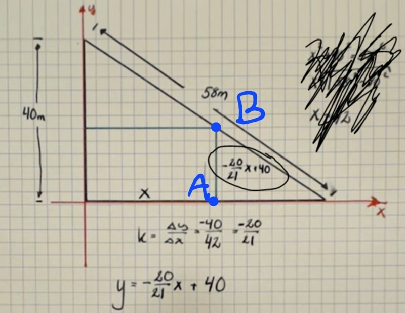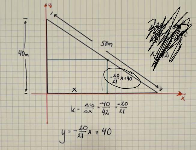 hur drar man slutsatsen att rektangelns längd är lutningen på triangelns (58m) sida?