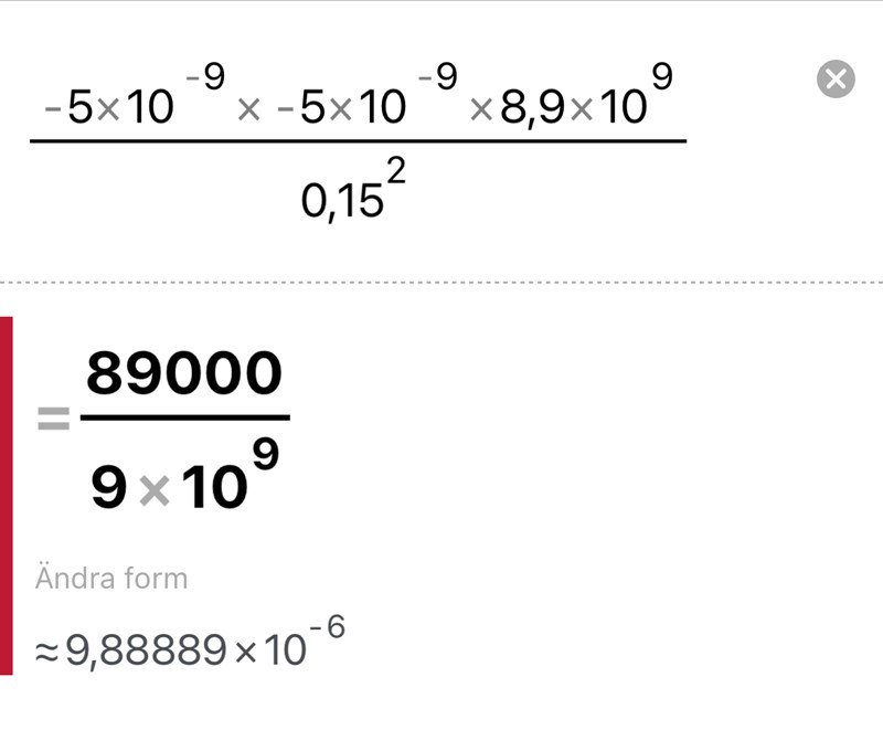 ((-5*10^-9)(-5*10^-9)*8.9*10^9)/(0.15^2)=