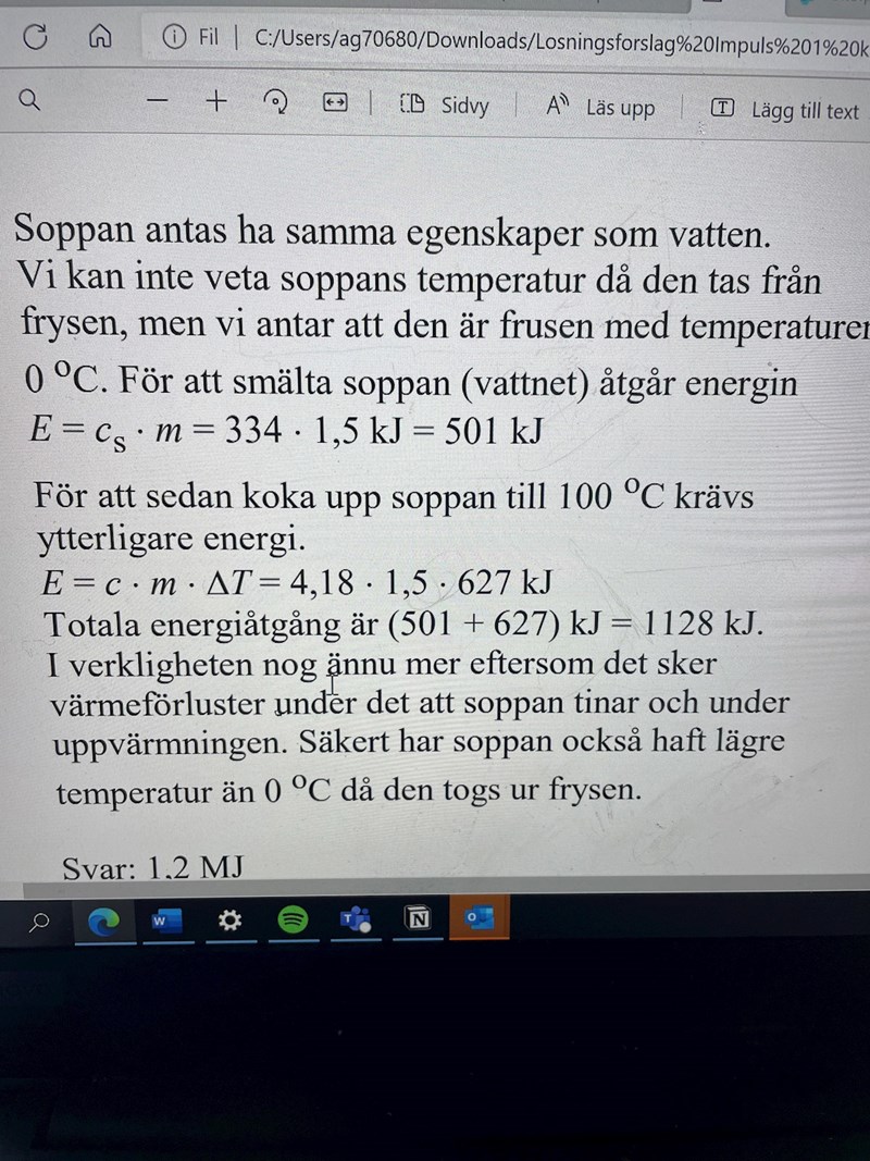 De har skrivit fel. Delta-T är 100 grader från 0 (soppan har smält) till 100 grader (då soppan kokar). Det ska stå: