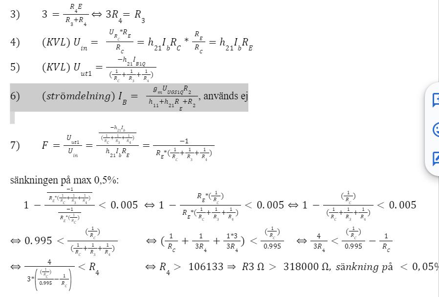 Är detta rätt då, jag fattar verkligen inte hur man ser uut1 och uin om de är rätt. Så stoppar jag först in 1/RC*RE och sedan (RC//R3//R4)/RE
