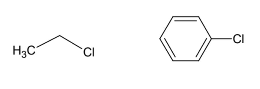 Jag vet inte riktigt hur jag ska tänka, det känns ju som att kloretan borde vara med reaktiv av sterisk anledning. Å andra sidan är elektronerna i klorbensen delokaliserade vilket kan göra den mer reaktiv. Dock vet jag inte om de delokaliserade elektronerna kan göra klorbensen mer reaktiv än kloretan.