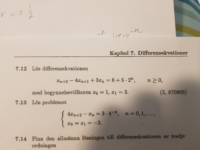Jag började väldigt nyligen med differensekvationer och är van vid att lösa ekvationer som exempelvis (Xn + Xn-1 + Xn-2 = 2n). Jag undrar hur man ska gå till väga om det istället står (Xn+2 + Xn+1 + Xn = 2n), det jag undrar är alltså hur man ska gå till väga då man börjar två steg efter Xn och går ner till Xn.