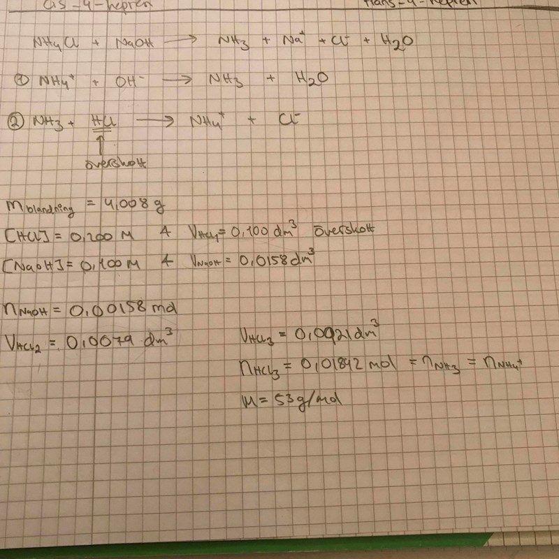 Jag förstår inte riktigt. Är det inte först NH4Cl i NaOH och det bildade ammoniak titrerar man med saltsyra?