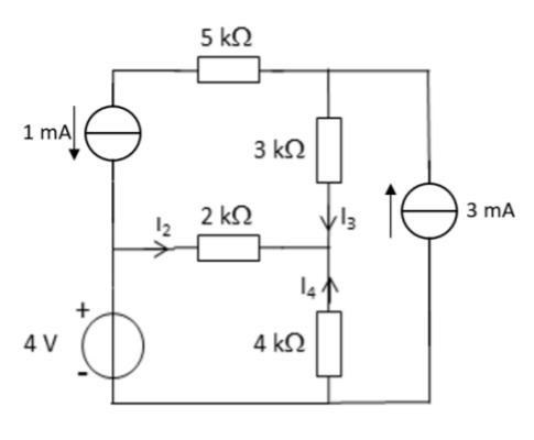 Kan man räkna med kirschhoffs strömlag i noden högst upp i mitten: 3m = 1m + I3 => I3 = 3 - 1 = 2m ?